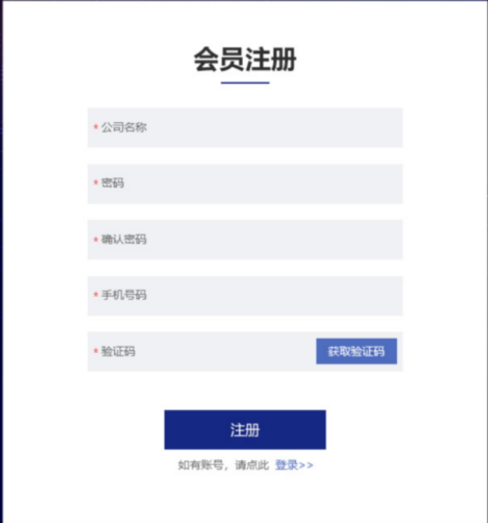 (2)若沒有在報名網(wǎng)站注冊過的企業(yè),請按要求進(jìn)行注冊,注冊后根據(jù)已注冊的賬號密碼登錄系統(tǒng),進(jìn)入報名表填寫環(huán)節(jié)。