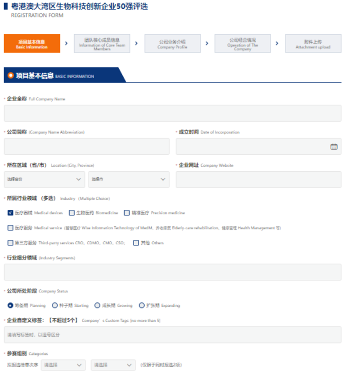 登錄粵港澳大灣區(qū)生物技術(shù)創(chuàng)新企業(yè)50強(qiáng)評選活動官方網(wǎng)站http://www.biotech-top50.com/,點(diǎn)擊“立即報名”;報名截止時間為2023年10月31日。