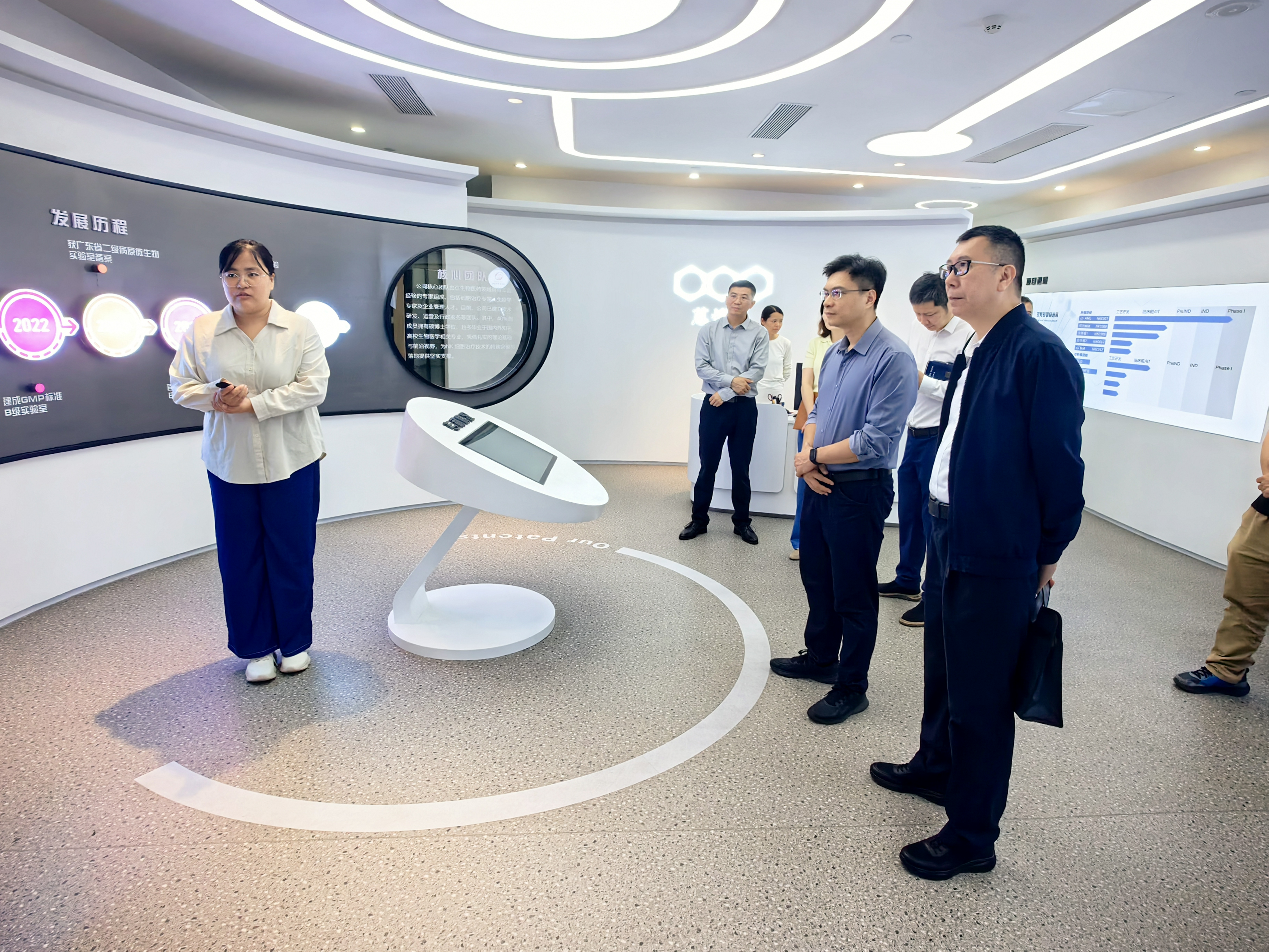 隨后,來賓一行實地考察了大灣區(qū)精準醫(yī)學研究院及園區(qū)企業(yè)天科雅與蒽愷賽。天科雅是一家在中國處于臨床階段的生物醫(yī)藥公司,專注于細胞免疫療法在實體瘤治療方面的創(chuàng)新、開發(fā)與臨床轉化。依托多項自主研發(fā)的細胞工程平臺技術,目前正推進八條研發(fā)管線,探索免疫細胞治療在多癌種領域的應用前景。