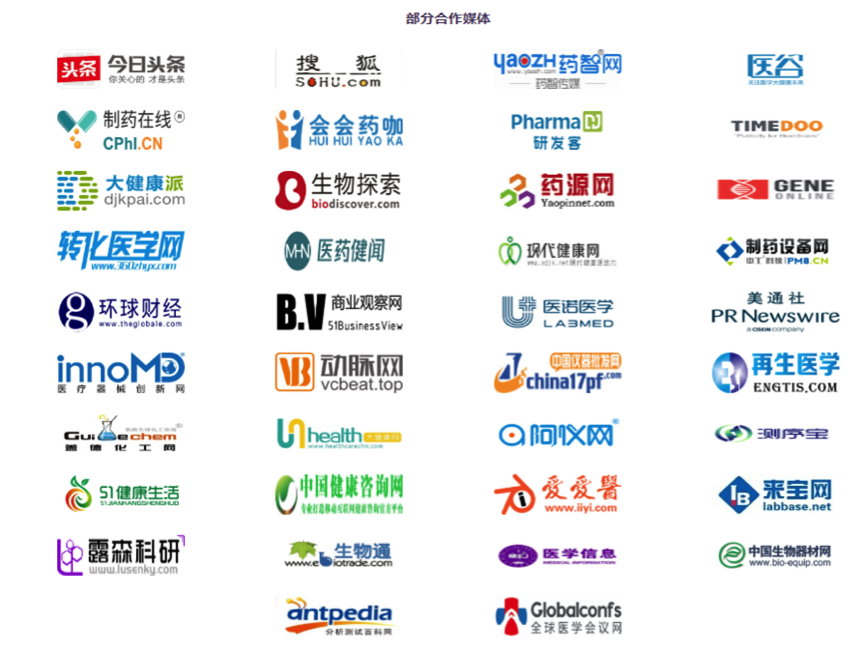 合作媒體 | 生物制藥小編、藥渡、新藥創(chuàng)始人俱樂部、藥學進展、制藥在線、肽度、醫(yī)藥合作投融資聯(lián)盟、藥融圈、藥通社、藥物一致性評價、藥物分析之家、藥物簡訊,生物探索等40家頂尖媒體助陣報道。