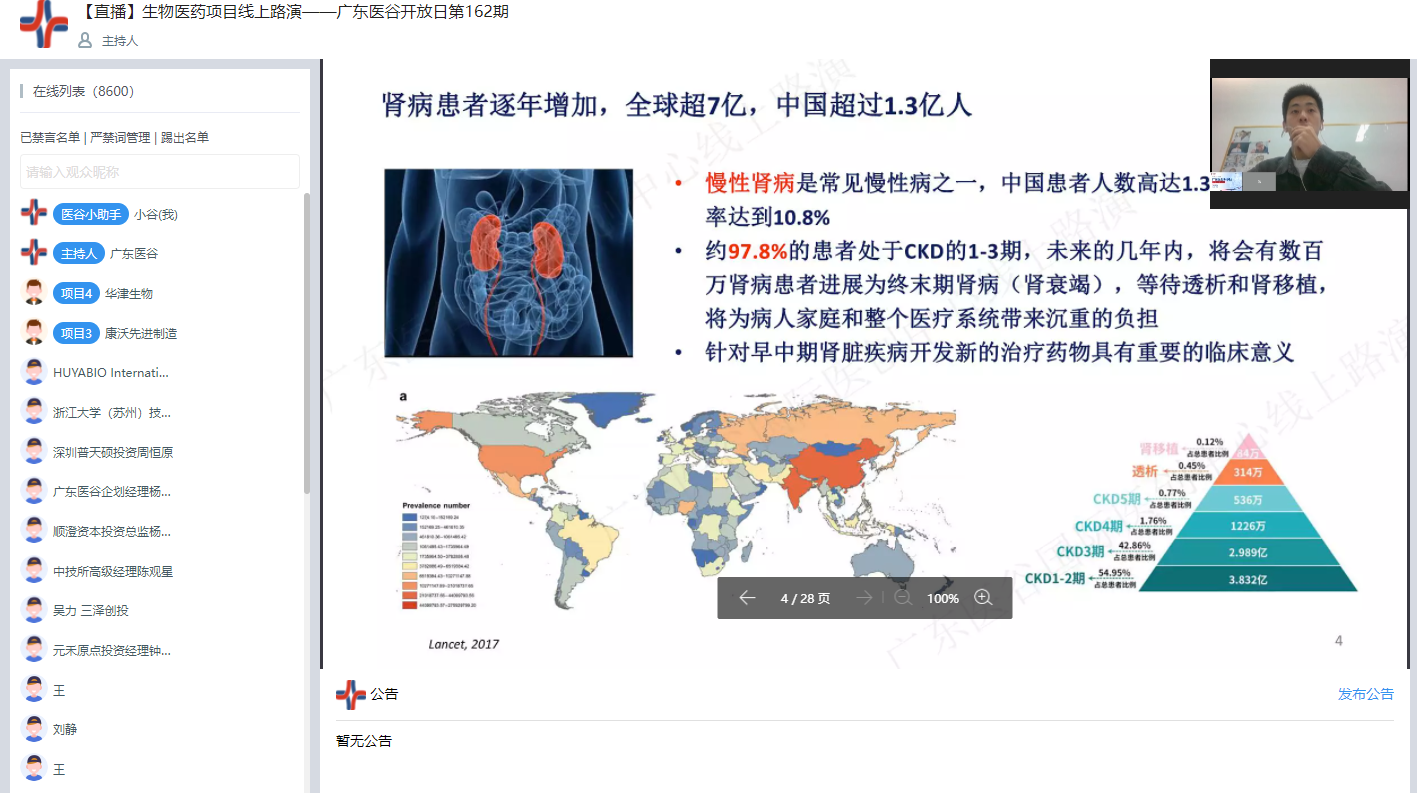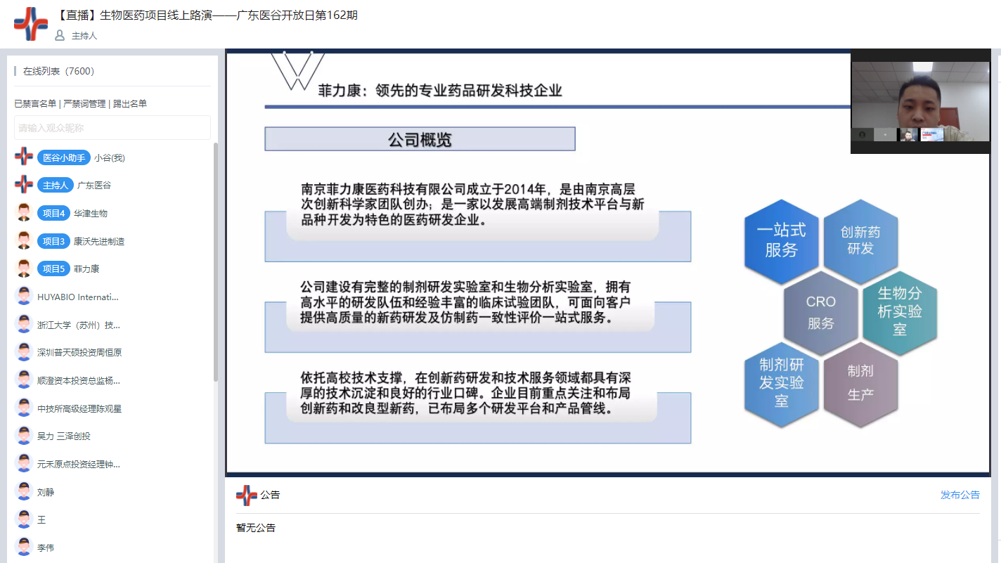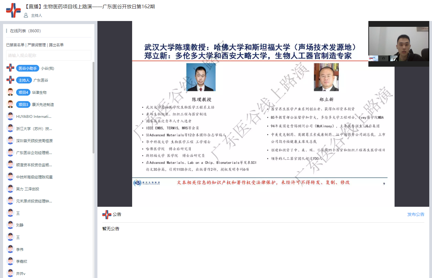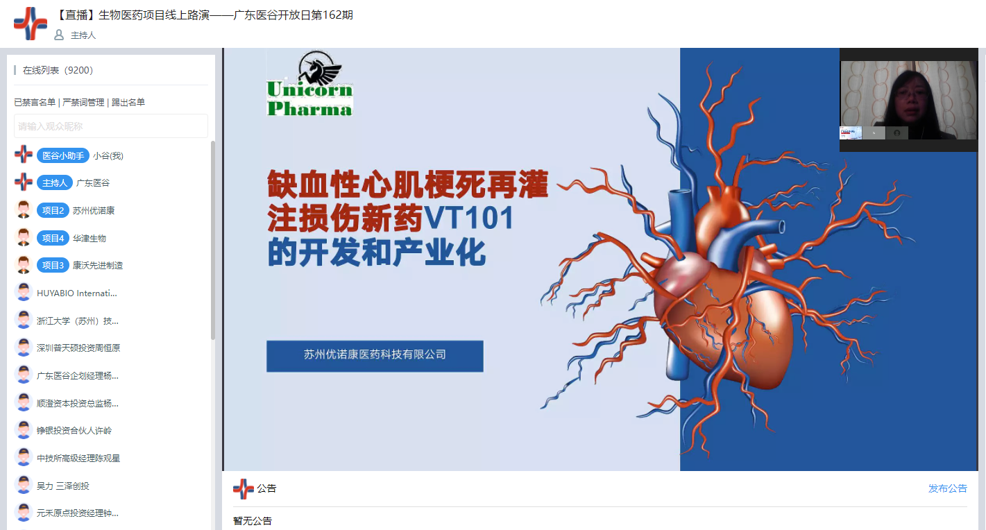 為促進醫(yī)療健康領(lǐng)域內(nèi)優(yōu)秀項目與投資機構(gòu)之間的投融資信息對接,共同推進生物醫(yī)藥行業(yè)創(chuàng)新發(fā)展,3月30日,生物醫(yī)藥項目線上路演——廣東醫(yī)谷開放日第162期順利在線上舉行。