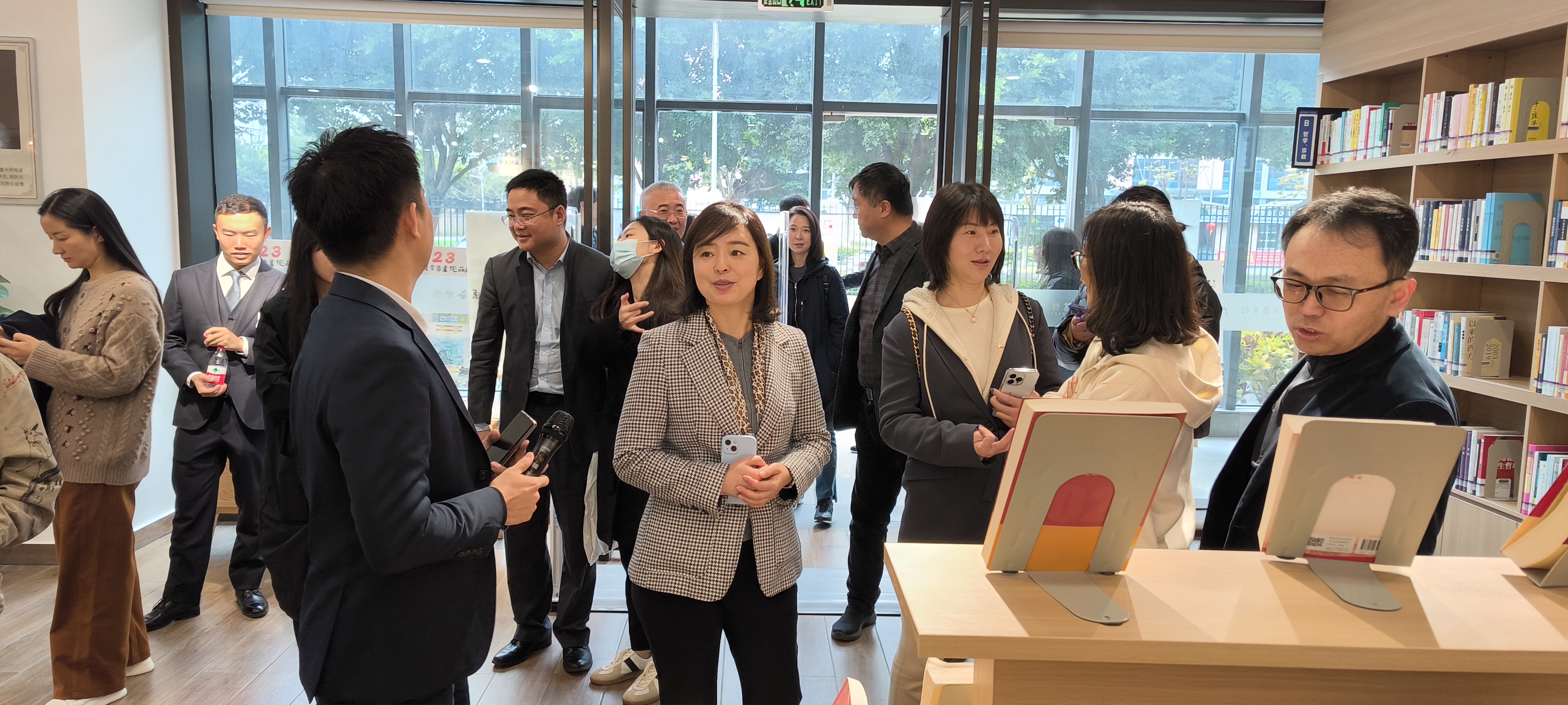 隨后,長江商學(xué)院大健康班來到南沙區(qū)圖書館廣東醫(yī)谷分館,近距離感受濃郁的讀書氛圍,并對于圖書館的環(huán)境表示認(rèn)可。