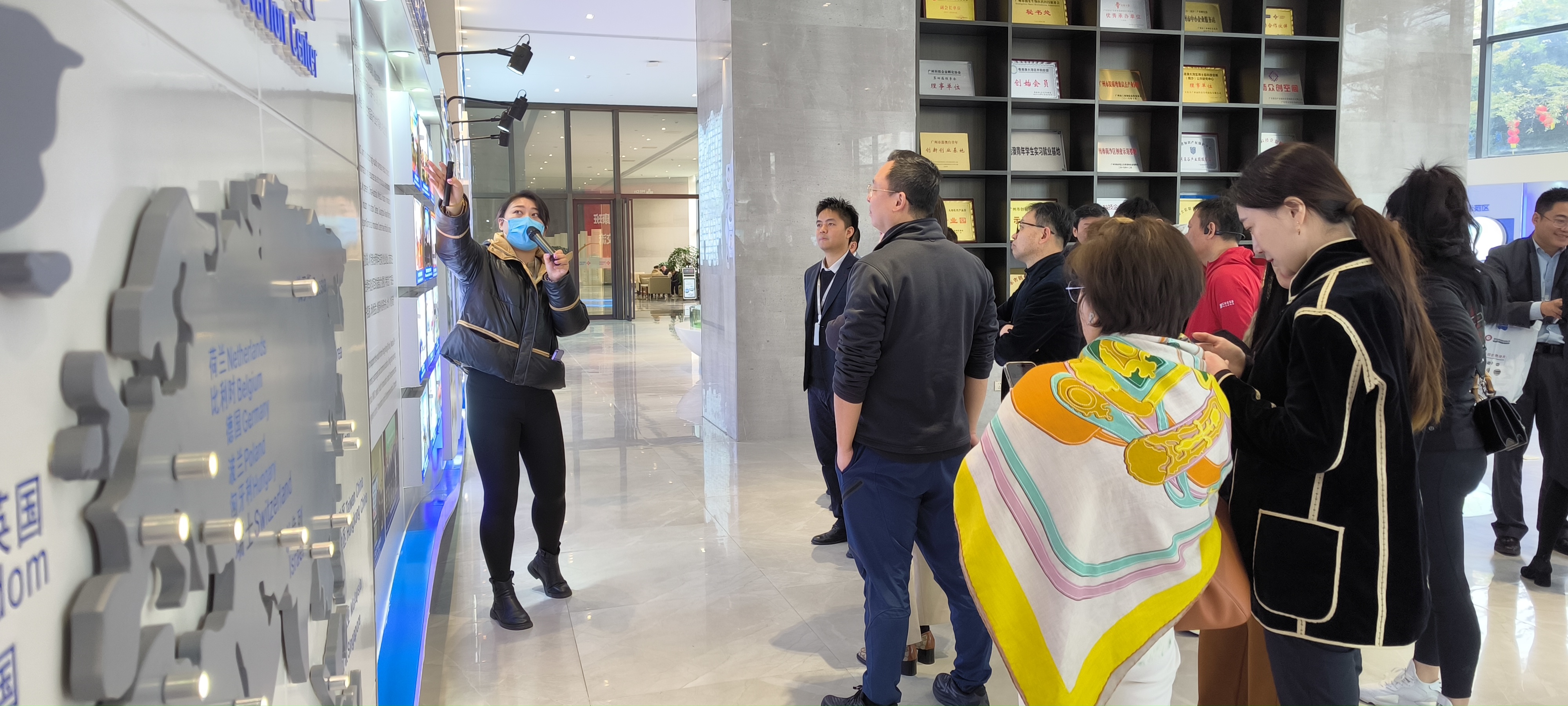 考察團(tuán)首先參觀了廣東醫(yī)谷·南沙生命科學(xué)園(一園)展廳。廣東醫(yī)谷業(yè)務(wù)板塊涉及醫(yī)療產(chǎn)業(yè)孵化器運(yùn)營、醫(yī)療項(xiàng)目股權(quán)投資、醫(yī)療綜合配套服務(wù)等。通過打造“產(chǎn)業(yè)集群×產(chǎn)業(yè)服務(wù)×產(chǎn)業(yè)投資”產(chǎn)業(yè)生態(tài)系統(tǒng),助力企業(yè)快速成長。展廳內(nèi),學(xué)員們對于廣東醫(yī)谷的運(yùn)營模式表現(xiàn)出了濃厚的興趣,廣東醫(yī)谷運(yùn)營資深經(jīng)理李文耀對廣東醫(yī)谷的大健康產(chǎn)業(yè)情況和中創(chuàng)MAX+服務(wù)體系展開了詳細(xì)介紹,廣東醫(yī)谷國際醫(yī)療產(chǎn)業(yè)創(chuàng)新中心負(fù)責(zé)人朱巍巍深入講解了國際方面的服務(wù)內(nèi)容。