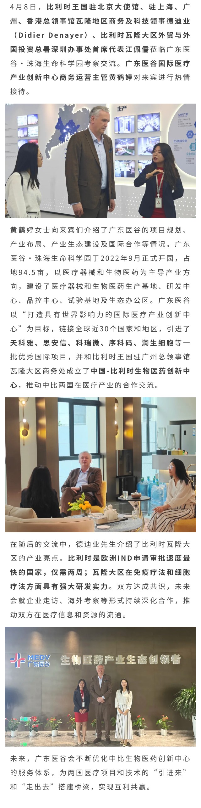 比利時(shí)駐北京大使館瓦隆地區(qū)商務(wù)及科技領(lǐng)事德迪業(yè)蒞臨廣東醫(yī)谷考察
