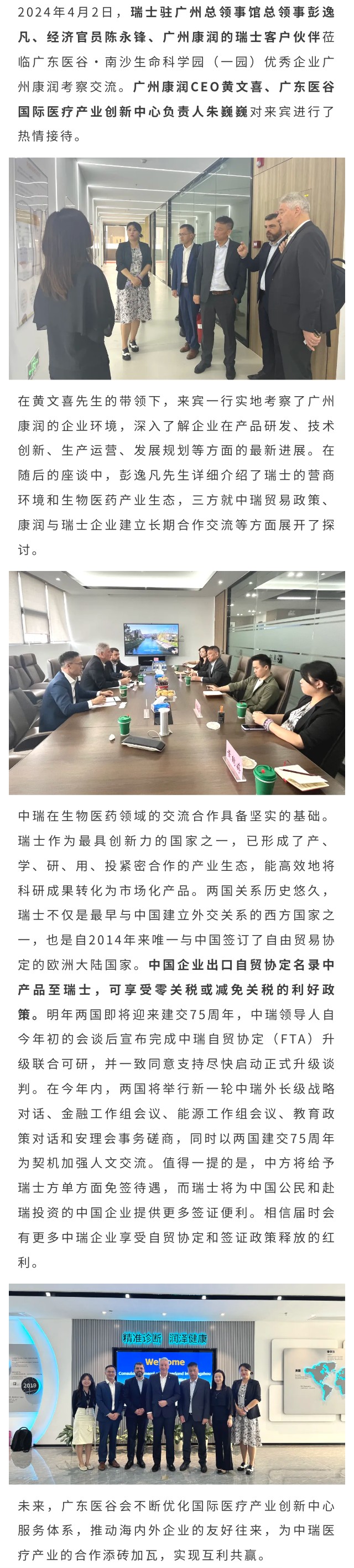 瑞士駐廣州總領事館總領事彭逸凡一行蒞臨廣州康潤考察交流