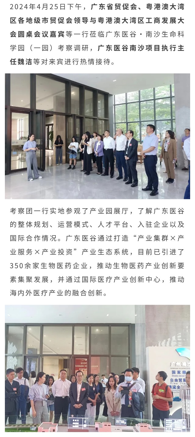 貿(mào)促會(huì)與粵港澳大灣區(qū)發(fā)展工商圓桌會(huì)議嘉賓一行蒞臨廣東醫(yī)谷考察調(diào)研