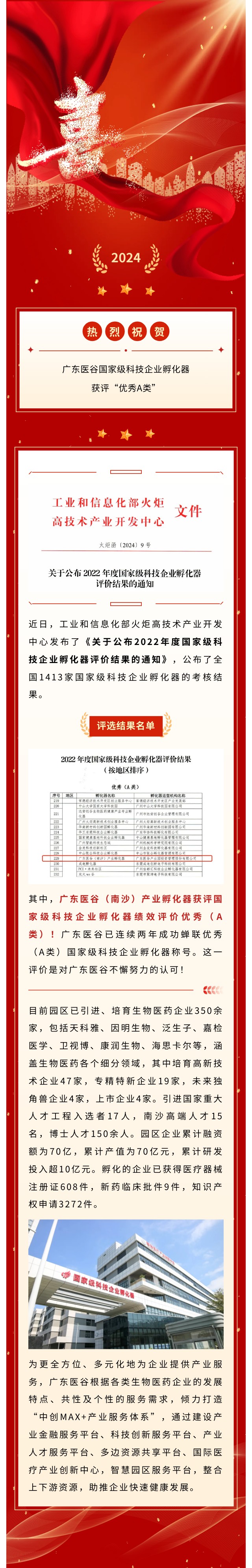 【喜訊】 廣東醫(yī)谷連續(xù)兩年獲國家級科技企業(yè)孵化器評價優(yōu)秀(A類)