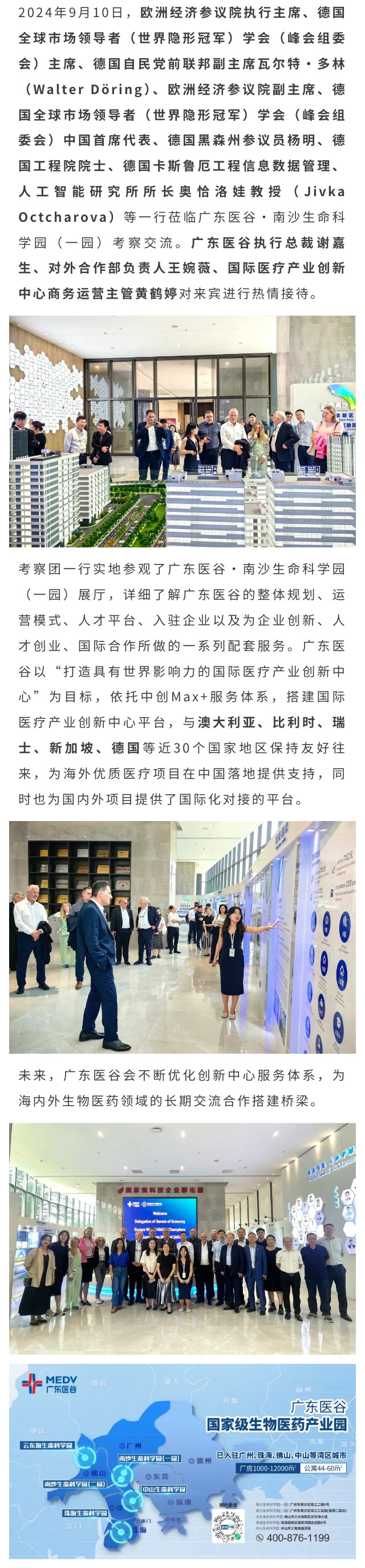 歐洲經(jīng)濟(jì)參議院、世界隱形冠軍企業(yè)經(jīng)貿(mào)代表團(tuán)蒞臨廣東醫(yī)谷考察交流
