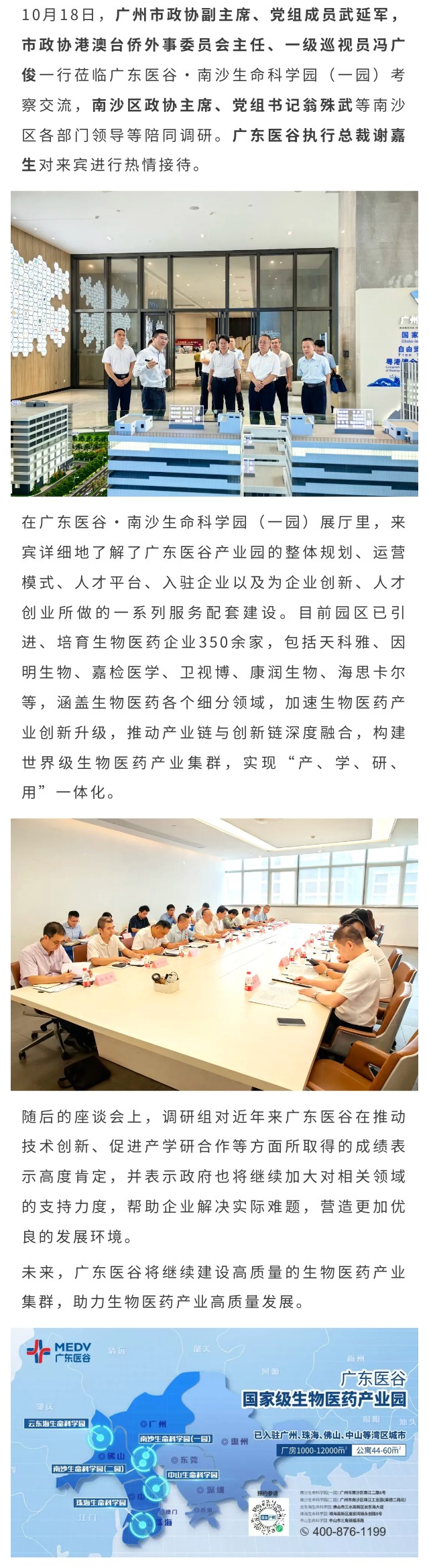 廣州市政協(xié)副主席、黨組成員武延軍一行蒞臨廣東醫(yī)谷考察交流