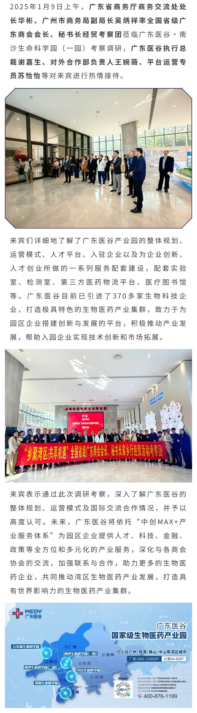 全國省級廣東商會會長經(jīng)貿(mào)活動考察團(tuán)一行蒞臨廣東醫(yī)谷考察調(diào)研