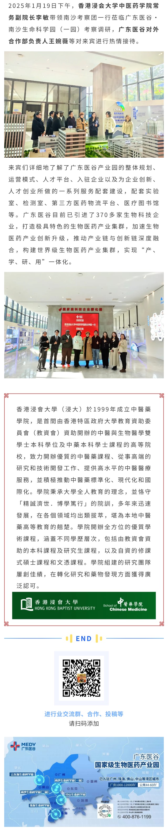 香港浸會大學中醫(yī)藥學院南沙考察團一行蒞臨廣東醫(yī)谷考察調研