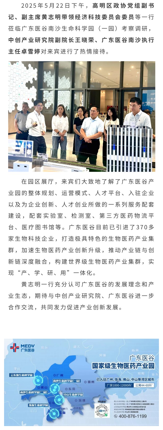 高明區(qū)政協(xié)黨組副書記、副主席黃志明等一行蒞臨廣東醫(yī)谷考察調(diào)研