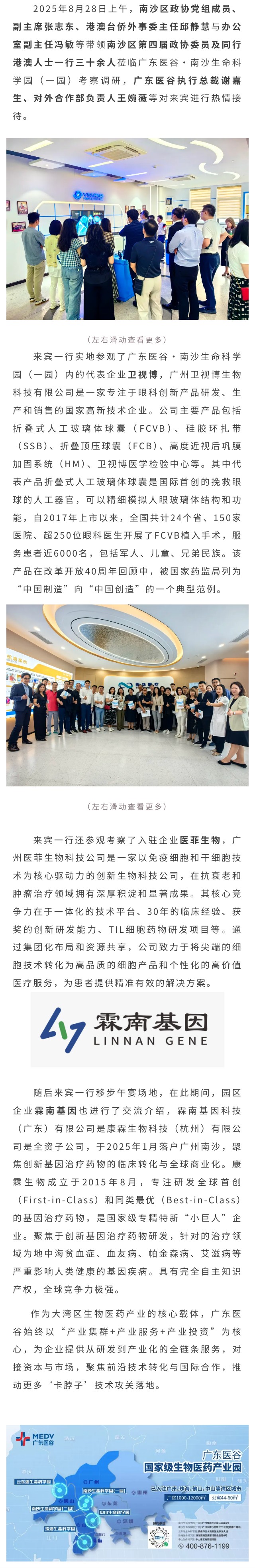 南沙區(qū)第四屆政協(xié)委員及港澳人士一行蒞臨廣東醫(yī)谷考察調(diào)研