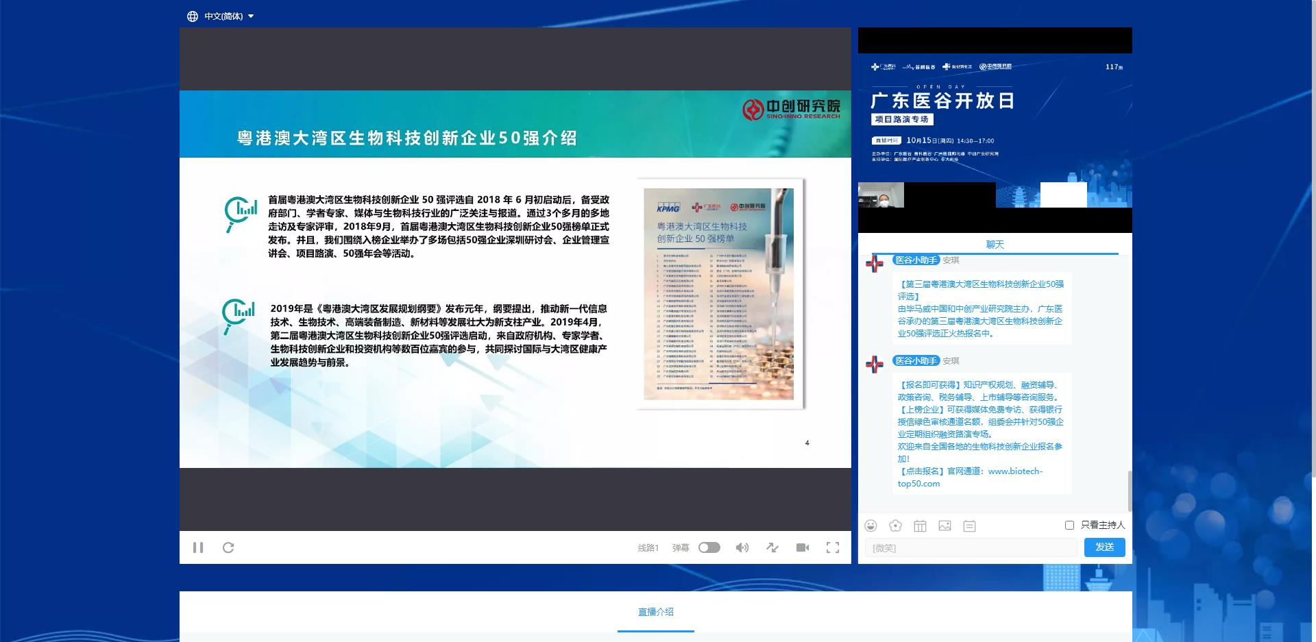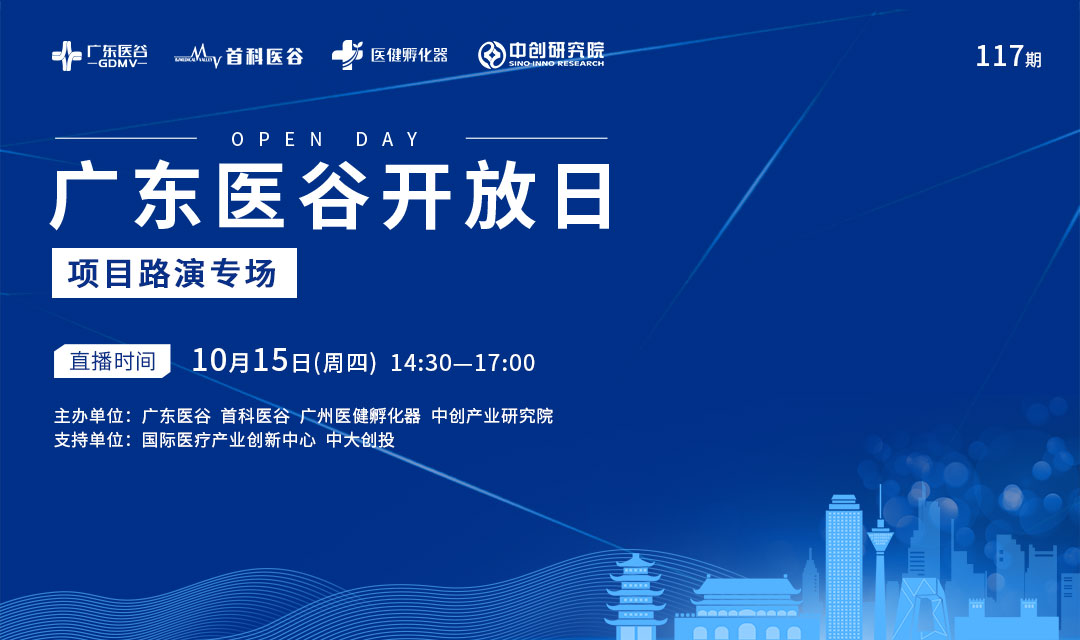 10月15日,由廣東醫(yī)谷、首科醫(yī)谷聯(lián)合主辦的117期廣東醫(yī)谷開(kāi)放日于線上順利舉辦,本次開(kāi)放日邀請(qǐng)了參與2020年粵港澳大灣區(qū)生物科技企業(yè)50強(qiáng)評(píng)選報(bào)名項(xiàng)目與京津冀地區(qū)項(xiàng)目進(jìn)行聯(lián)合路演,推動(dòng)優(yōu)質(zhì)科技成果轉(zhuǎn)化落地,高效促進(jìn)跨區(qū)域項(xiàng)目交流合作。廣發(fā)證券投行醫(yī)療副總經(jīng)理胡洋、元禾原點(diǎn)投資總監(jiān)劉炳乾、廣州精科生物戰(zhàn)略規(guī)劃總監(jiān)林炳生、光量資本地區(qū)董事謝作朋、廣東醫(yī)谷執(zhí)行總裁謝嘉生、廣東醫(yī)谷項(xiàng)目經(jīng)理謝名勝出席了活動(dòng)現(xiàn)場(chǎng)。