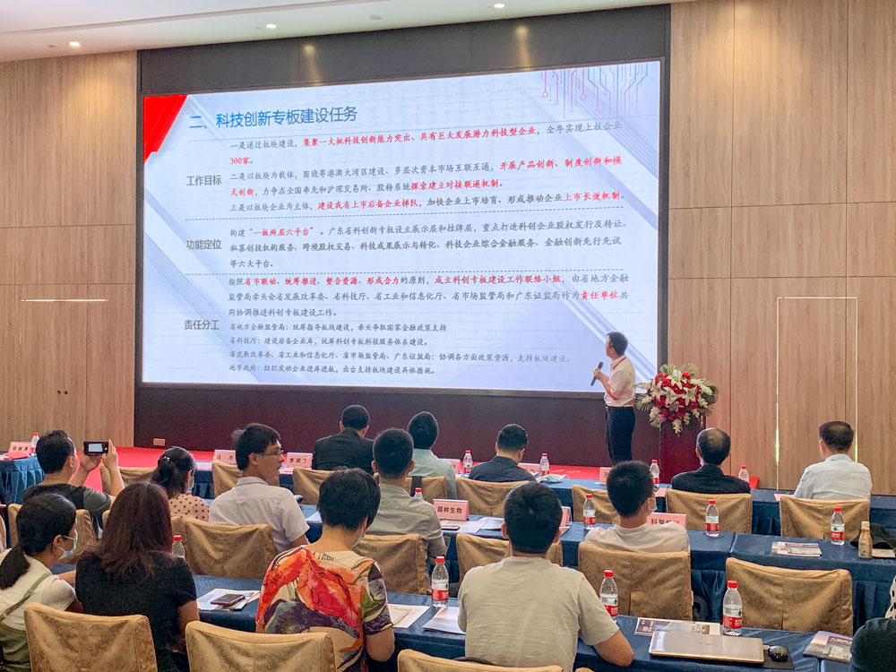 為了更好地讓企業(yè)了解科技創(chuàng)新專板建設(shè)情況,本次活動(dòng)由廣東股權(quán)交易中心機(jī)構(gòu)服務(wù)部副總經(jīng)理王鎮(zhèn)華向在場(chǎng)嘉賓進(jìn)行廣東科技創(chuàng)新專板推介,并重點(diǎn)介紹了科技創(chuàng)新專板“一板兩層六平臺(tái)”的具體內(nèi)容和支持創(chuàng)新發(fā)展和高質(zhì)量發(fā)展的具體舉措。
