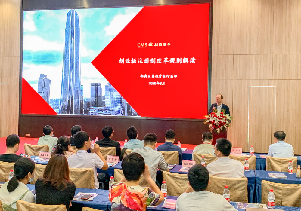 同時(shí)本次活動(dòng)還邀請(qǐng)到了招商證券投資銀行總部執(zhí)行董事、保薦代表人石志華,以深交所創(chuàng)業(yè)板改革為背景向在場(chǎng)嘉賓詳細(xì)講解了創(chuàng)業(yè)板改革并試點(diǎn)注冊(cè)制的相關(guān)業(yè)務(wù)規(guī)則及配套安排,并從新創(chuàng)業(yè)板審核、發(fā)行、承銷與交易方面作重點(diǎn)分析解讀。